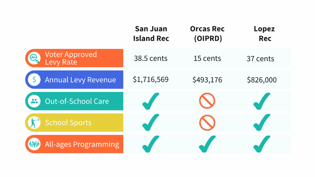 Some ask why the rate is higher than Orcas. The answer is simple: Orcas Rec doesn’t fund school sports or an After School Program. Lopez families asked us to protect both. We wanted to ensure elected commissioners had sufficient levy revenue to provide the programming needed.